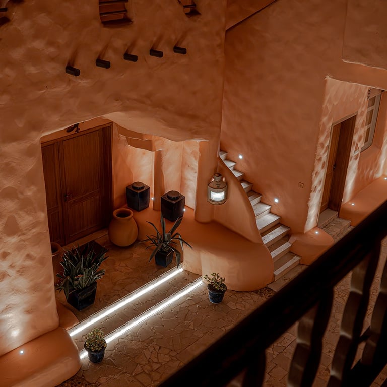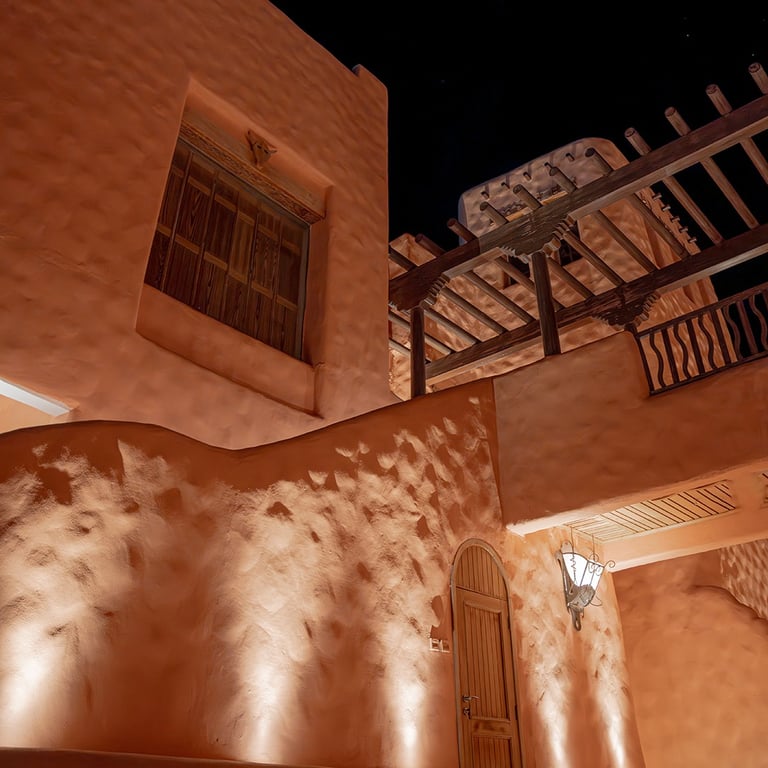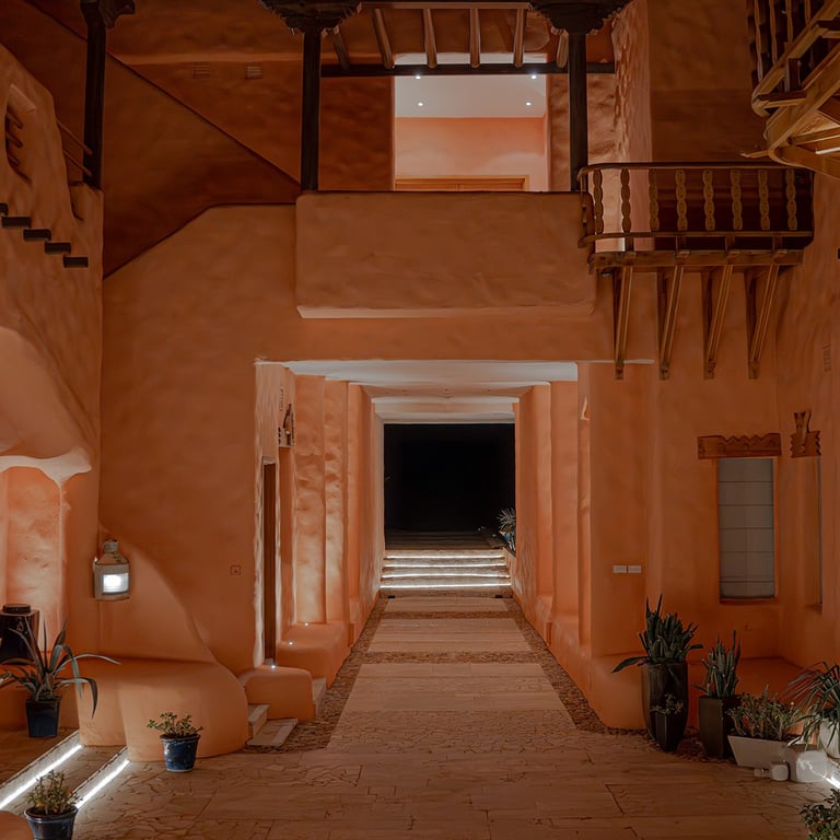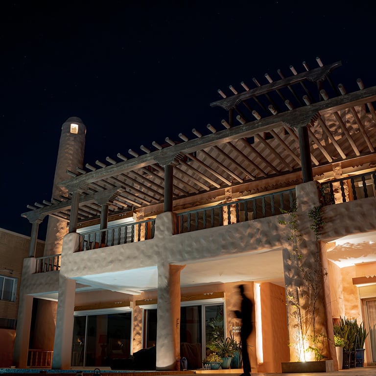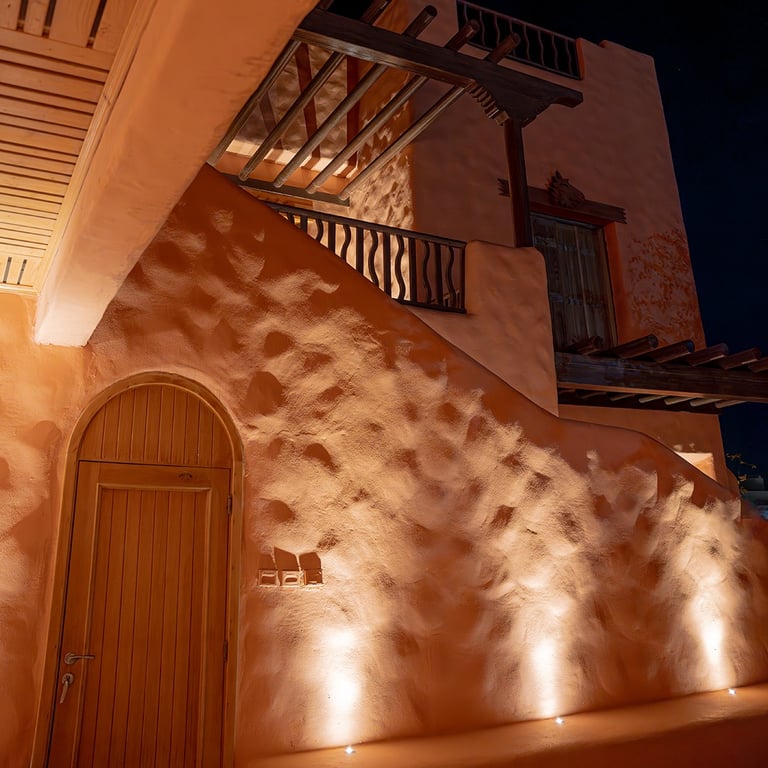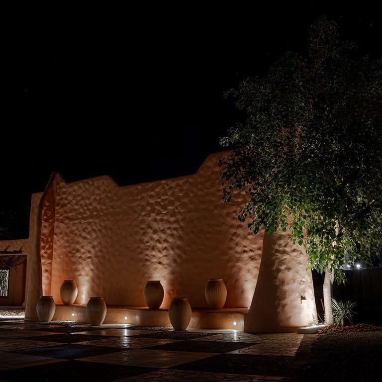 Our discreet lighting installation enhances the beauty of this traditional Kuwaiti home, carefully highlighting its textures and intricate details while preserving its authentic essence. By seamlessly integrating light into the design, we created an atmosphere that honors the past while illuminating the future. The result is a harmonious blend of heritage and modern lighting, bringing warmth and elegance to every corner.