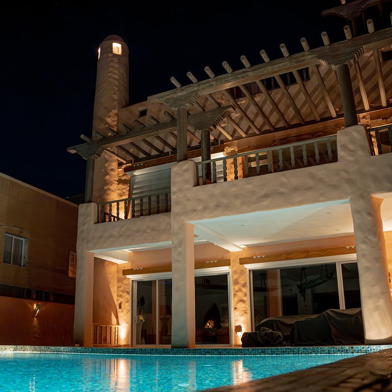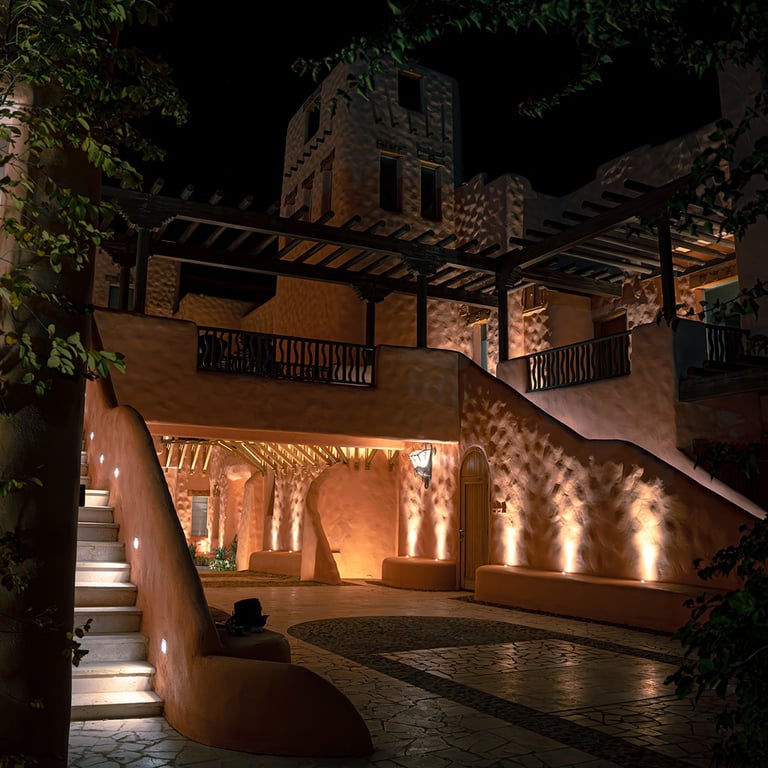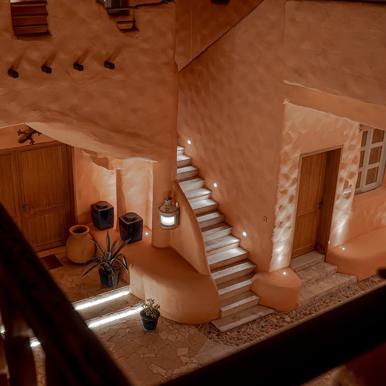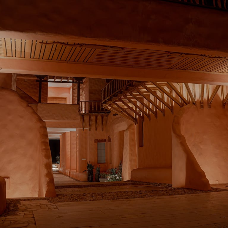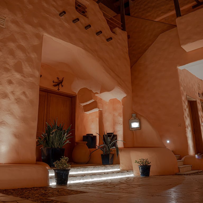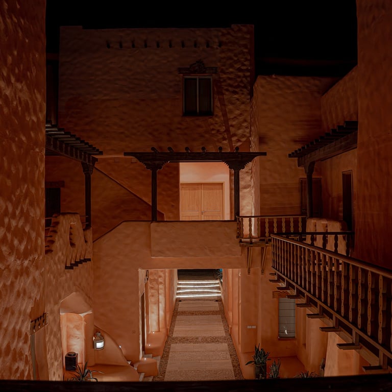 Our discreet lighting installation enhances the beauty of this traditional Kuwaiti home, carefully highlighting its textures and intricate details while preserving its authentic essence. By seamlessly integrating light into the design, we created an atmosphere that honors the past while illuminating the future. The result is a harmonious blend of heritage and modern lighting, bringing warmth and elegance to every corner.