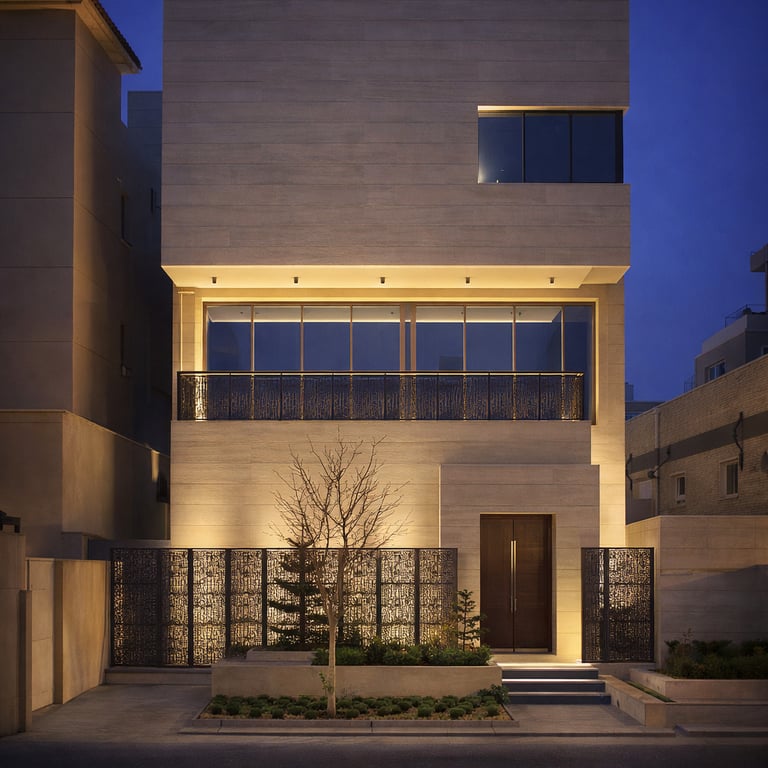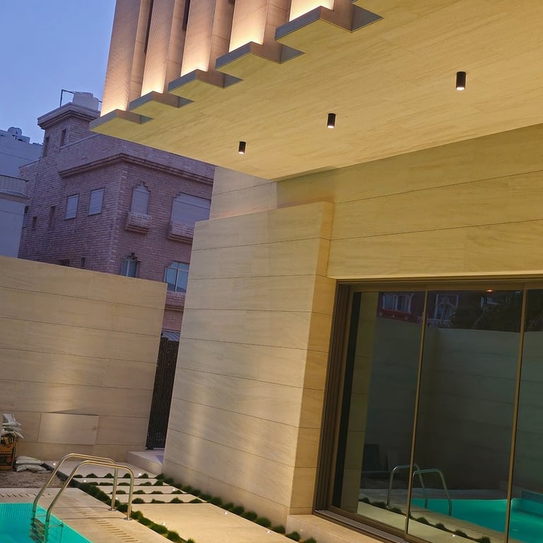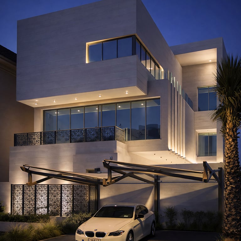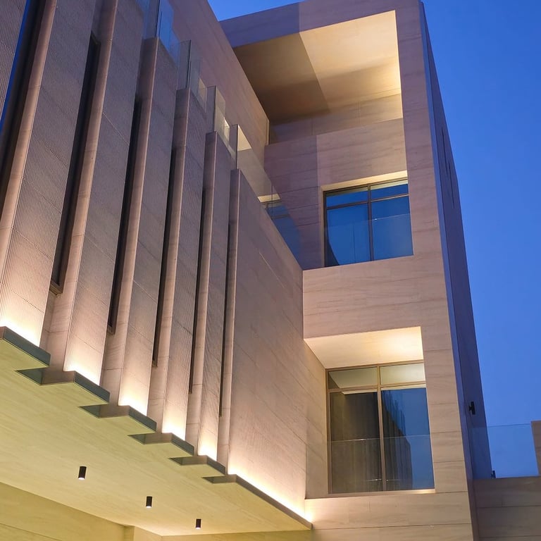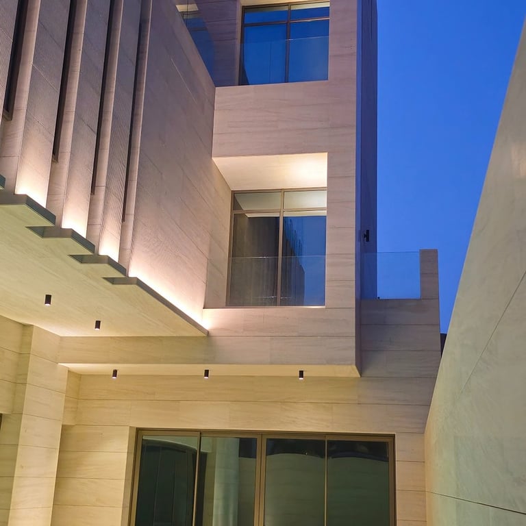 Spaces & Concepts delivered a complete architectural façade and outdoor lighting design for this contemporary private villa in Kuwait.