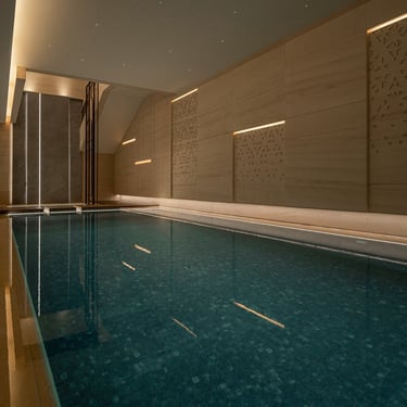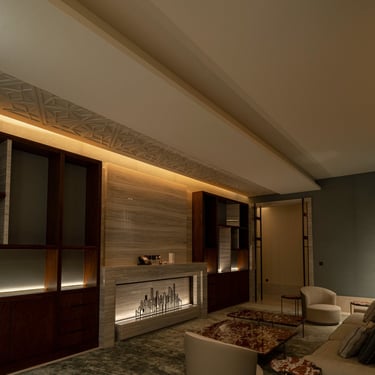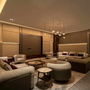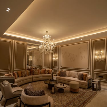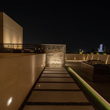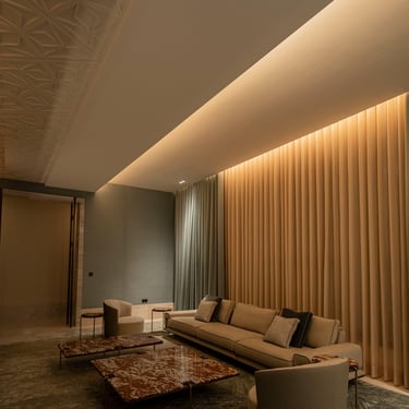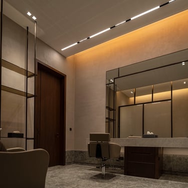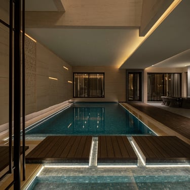 From the grand entrance to the serene poolside area, lighting was carefully selected to highlight architectural details while ensuring practical, ambient illumination. Inside, each floor features tailored lighting schemes, from the high-end private gym and in-house barber salon, to intimate living areas and luxurious bedrooms.